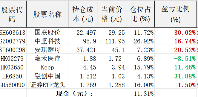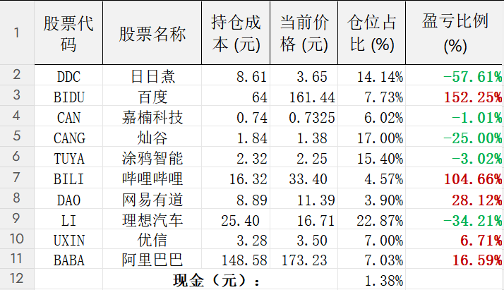 当前仓位分布表