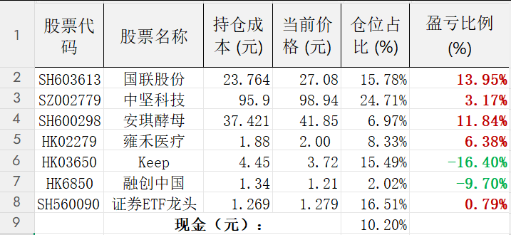 本周交易记录:27元价位加仓部分国联股份,1.30价位T出大部分融创中国,日日煮通过做T略微降低持仓成本。