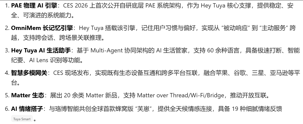 前段时间号称是消费电子盛会的CES2026上结束了,让AI代为效力统计了一下涂鸦这次在CES2026上到底掏了多少黑科技出来?相信对这个问题好奇的也不只我一个吧。