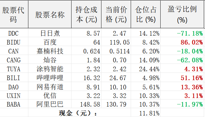 当前仓位分布表:
