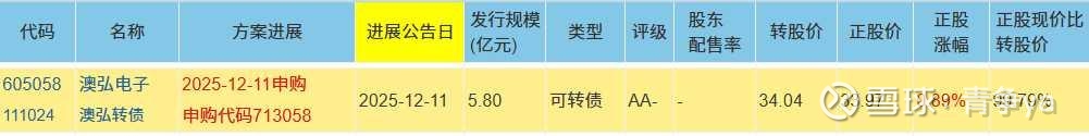 澳弘转债正股澳弘电子(605058),沪市上市公司,属于电子-元件-印制电路板行业,发行规模5.8亿,评级AA-级,正股现价比转股价99.79%。