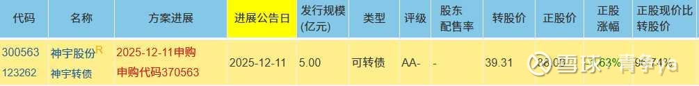 神宇转债正股神宇股份(300563),深市上市公司,属于通信-通信设备-通信线缆及配套行业,发行规模5亿,评级AA-级,正股现价比转股价96.74%。