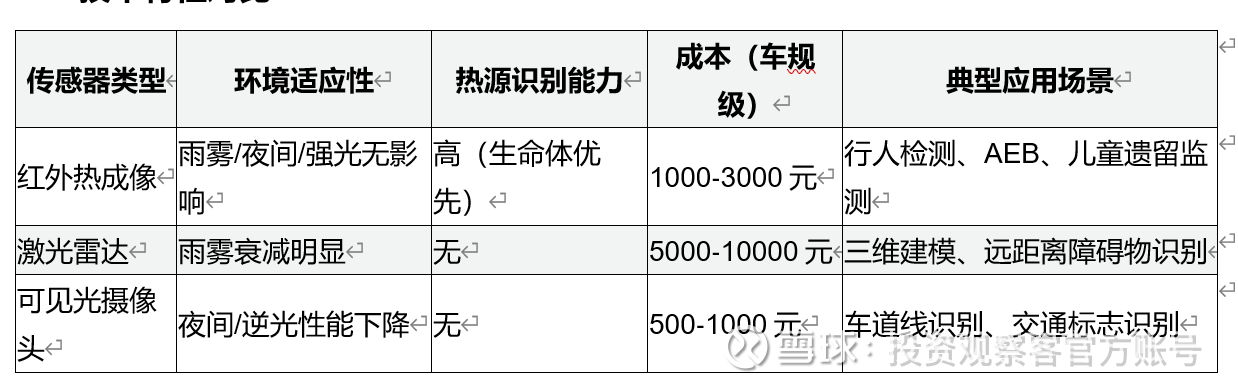 2、成本与性价比权衡:L2/L2+级车型更倾向于“摄像头+毫米波雷达”低成本方案,红外被视为高阶智驾(L3+)的非必需配置。