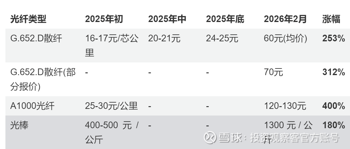 ● 价格飙升:A1000光纤从2025年25-30元/公里飙升至120-130元/公里