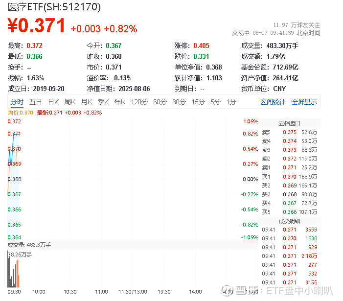 热门ETF方面,股票型基金医疗ETF(512170)场内价格上涨1.09%,成交额达1.60亿元。