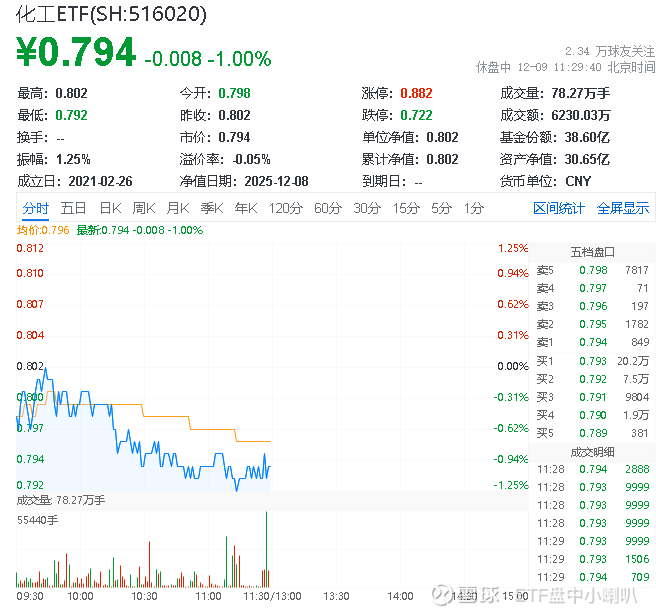 热门ETF方面,化工ETF(516020)场内价格下跌1.0%,成交额达6230.03万元。