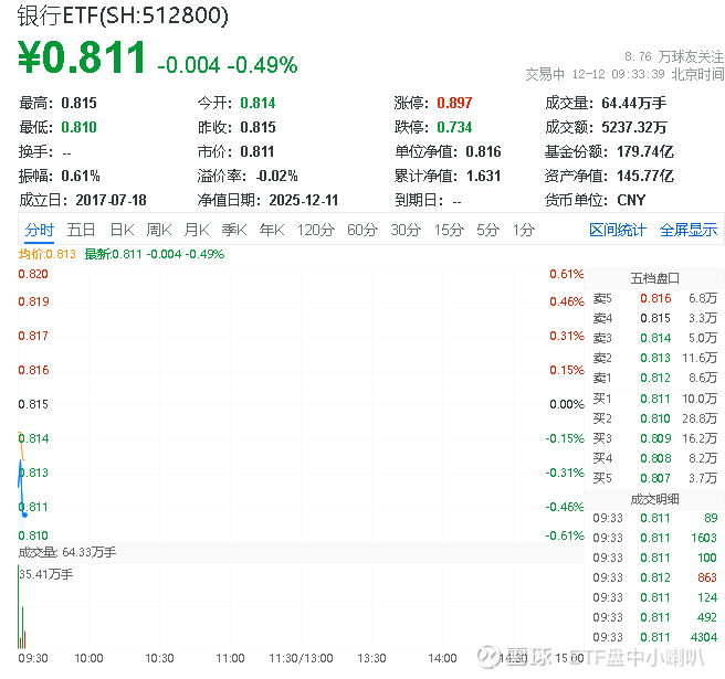 热门ETF方面,银行ETF场内价格下跌0.37%,成交额达2663.27万元。