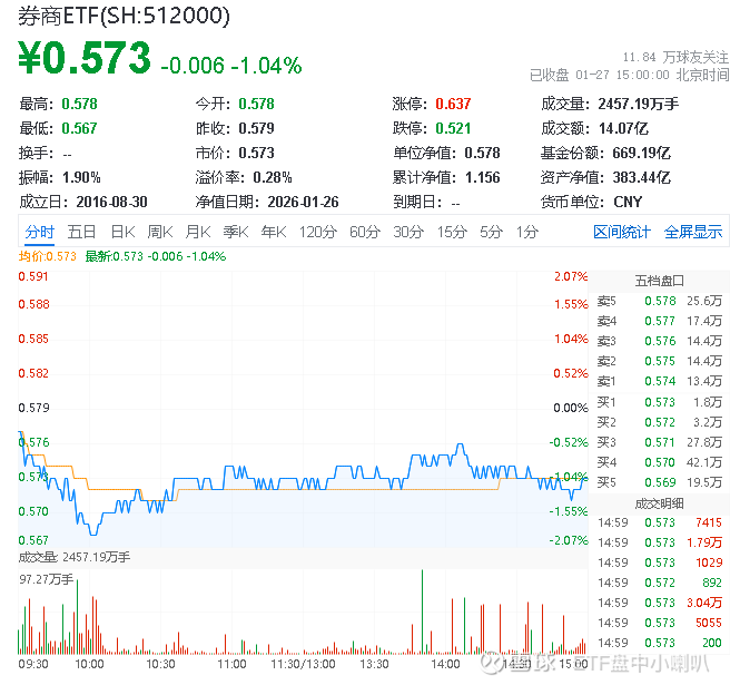 热门ETF方面,券商ETF(512000)场内价格下跌1.04%,成交额达14.07亿元。