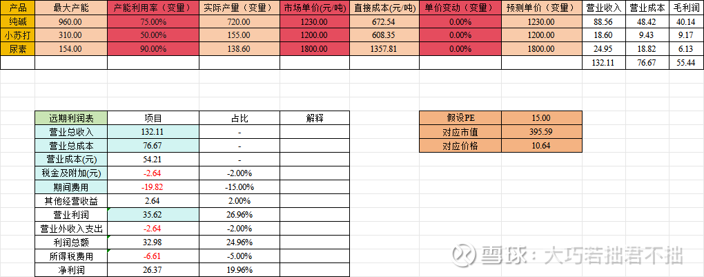 其他假设:小苏打、尿素的价格和利用率保持不变;期间费用率等比例关系沿用原表逻辑。