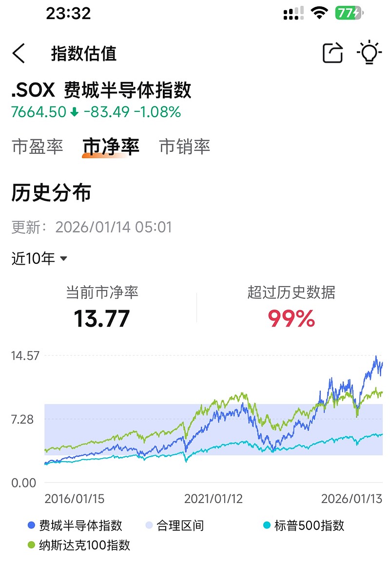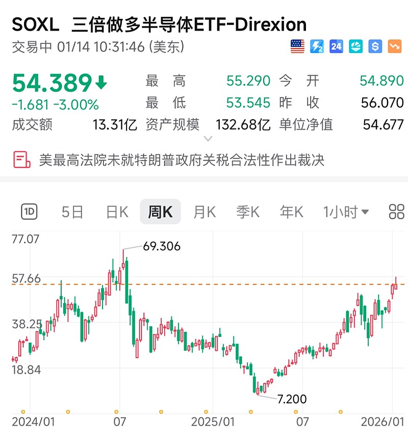 看那些成份股,几个月涨了几倍,几年涨10倍,8倍以上……假如又像2022年或2025年那样回调40%至50%。那soxl就又再跌90%,回到10元以下,甚至是6元以下。