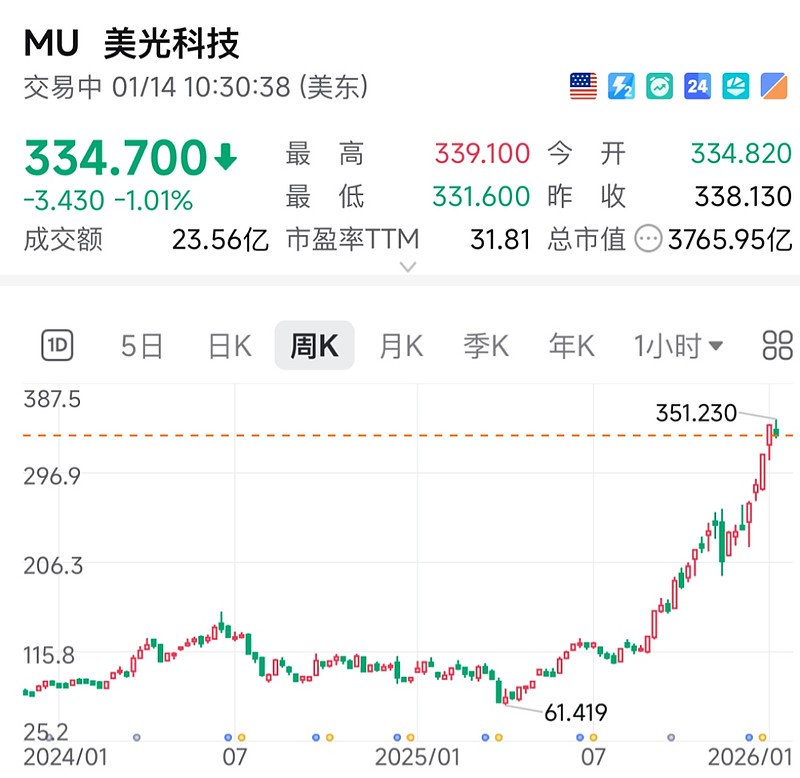 连美光都涨到近4000亿市值,这也太疯了吧,这么疯的情况下,soxl 也仅这价位……成份股股价远远高于2021年,也高于2024年,那2次,soxl都能从70元跌到6字头,跌90%。那这一次,如果照搬套路,soxl也跌90%,那soxl 也有可能跌穿10元,6元……