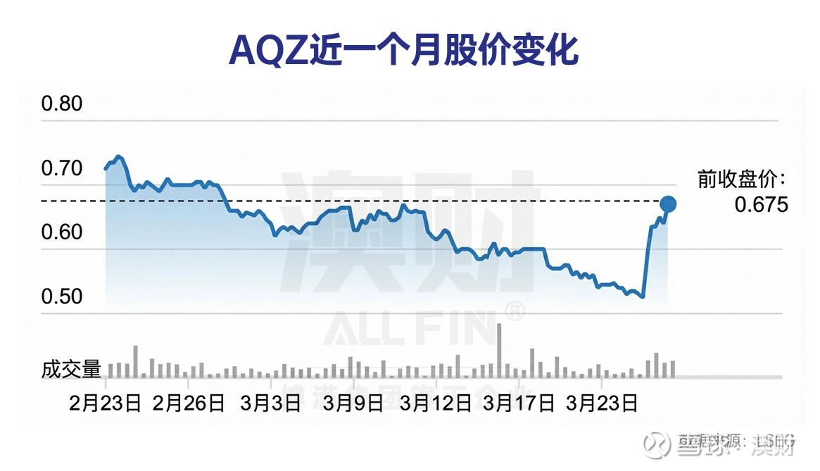 股价变化:AQZ 在 2 月 27 日收盘约 A$0.68,到 3 月 25 日收盘仍约 A$0.68,在这轮短窗口里几乎持平;但其 52 周区间约 A$0.52–2.81。