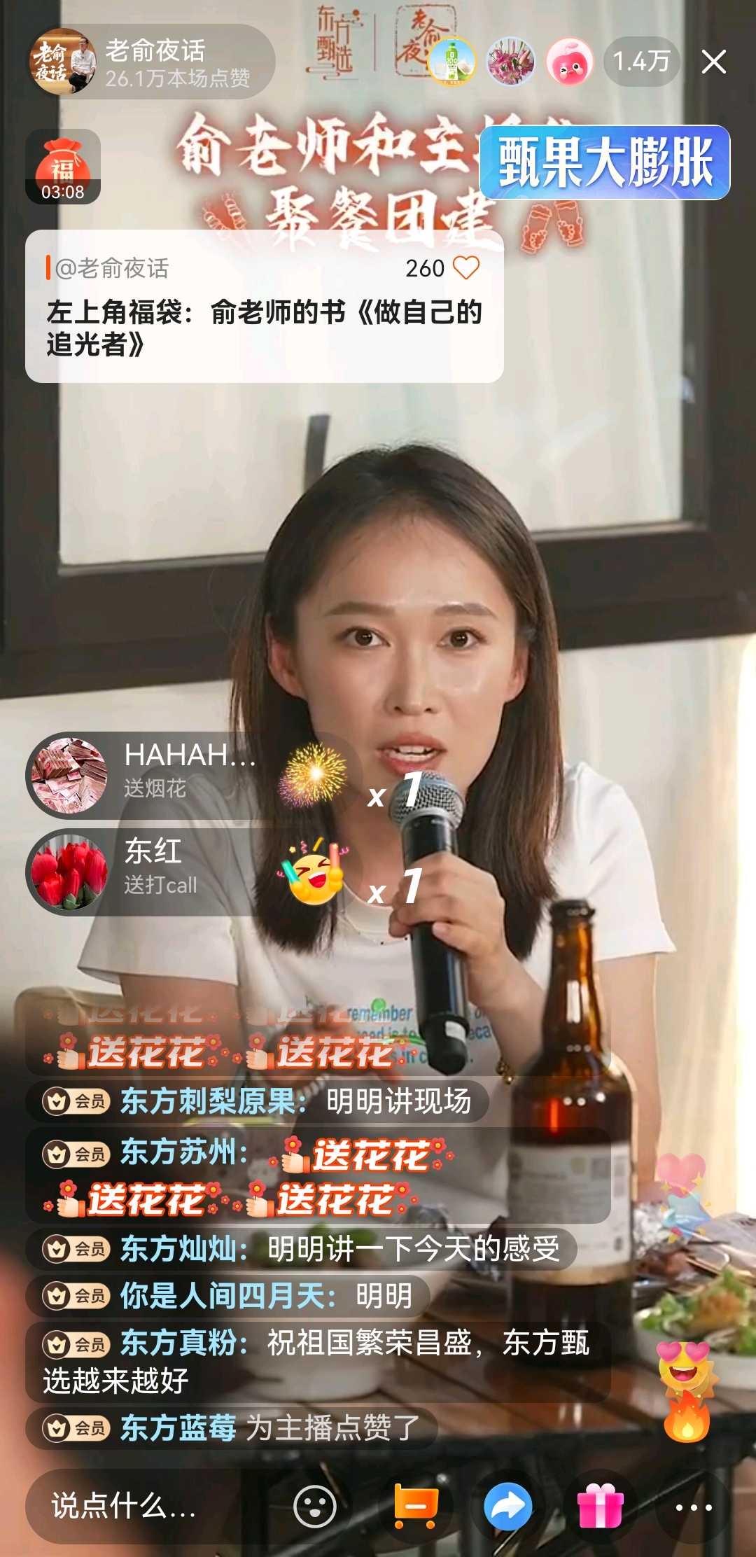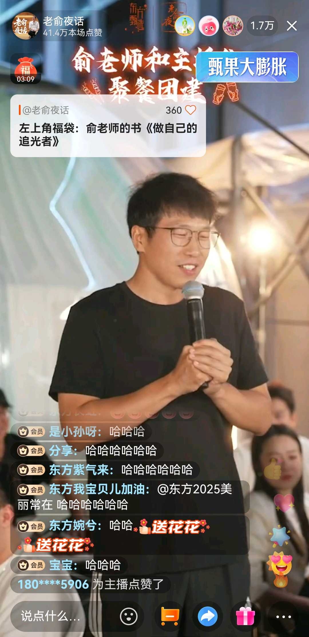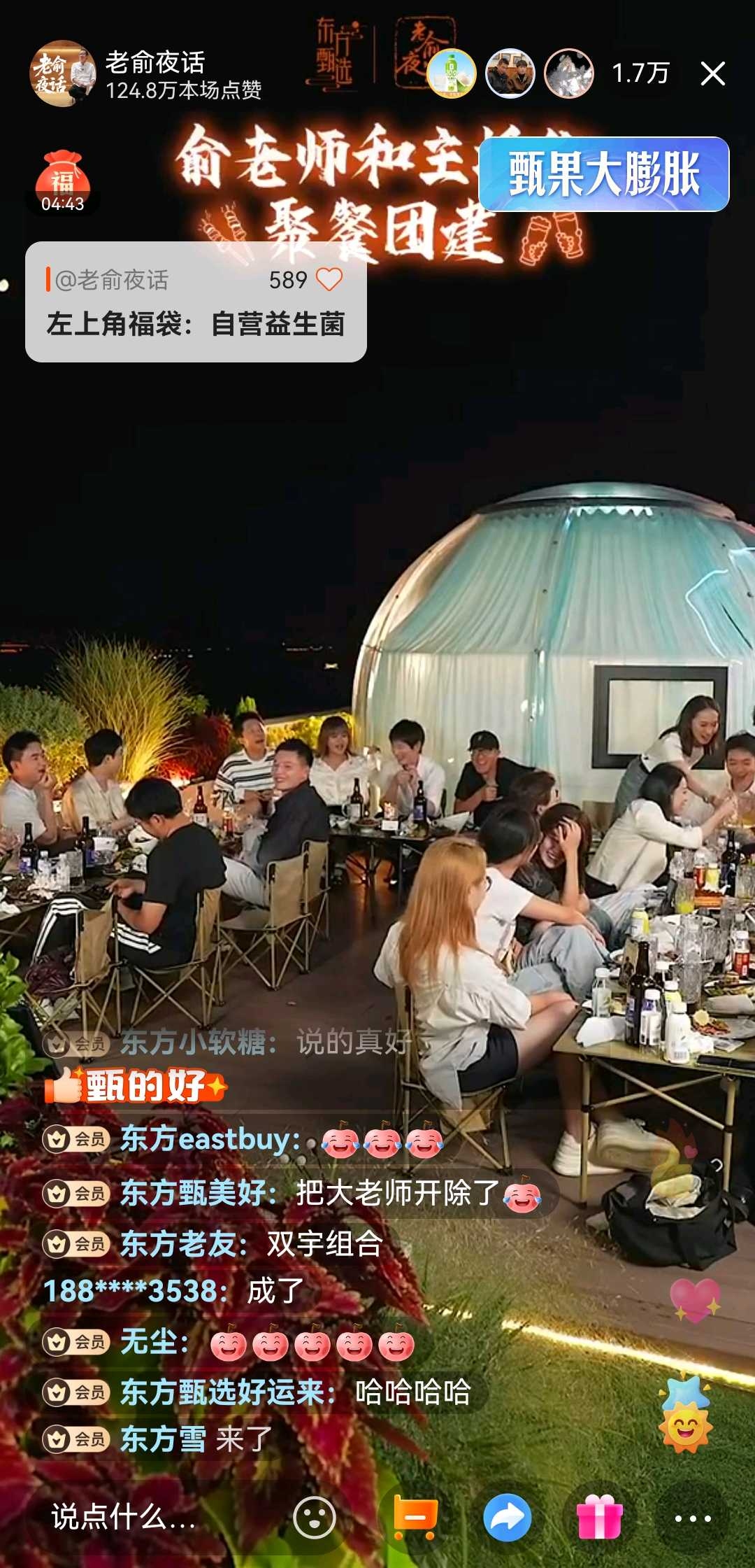 在国庆阅兵的恢弘背景下,东方甄选于昨日晚间举办了一场别开生面的俞敏洪老师与主播联欢会。这场持续至深夜的高峰1.7万人在线直播,表面是俞敏洪"灵光一现"的创意产物,实则深刻体现了东方甄选作为会员制平台企业(花旗研报背书)的差异化竞争优势——当多数直播间还在追逐短期GMV时,东方甄选已通过人文联结构建护城河。