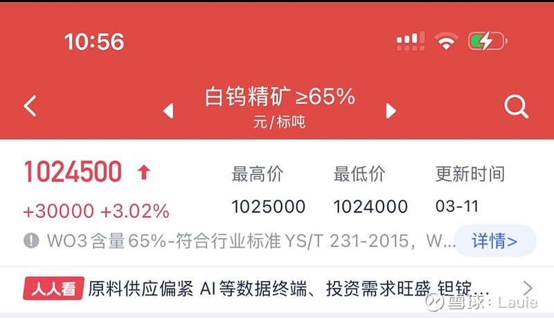 今天到年底还有202个工作日,如果钨价每个工作日涨2万,今年能涨到500万每吨!佳鑫年产能1.1万吨,净利润就是500个亿!