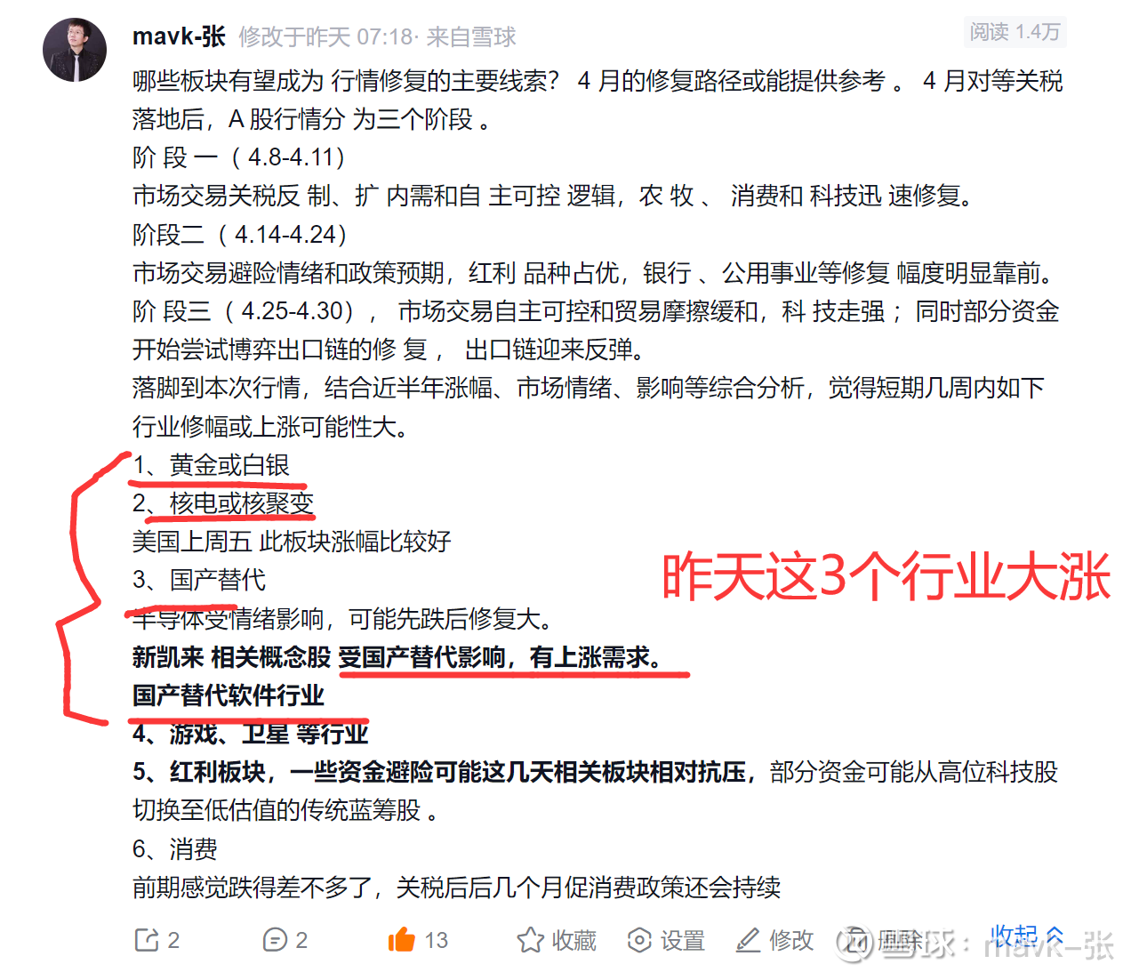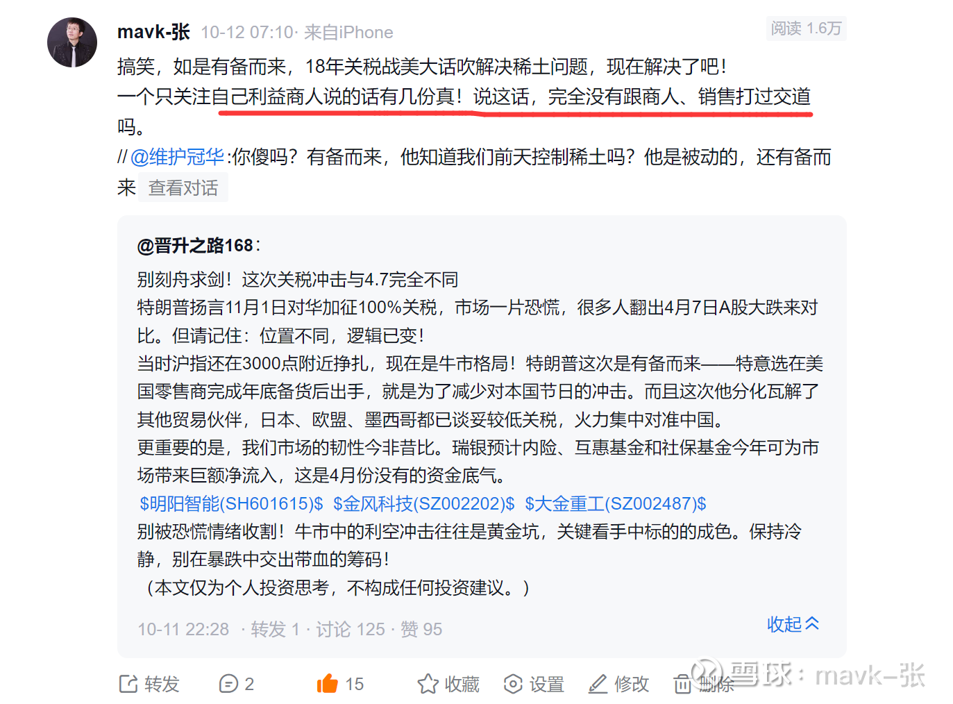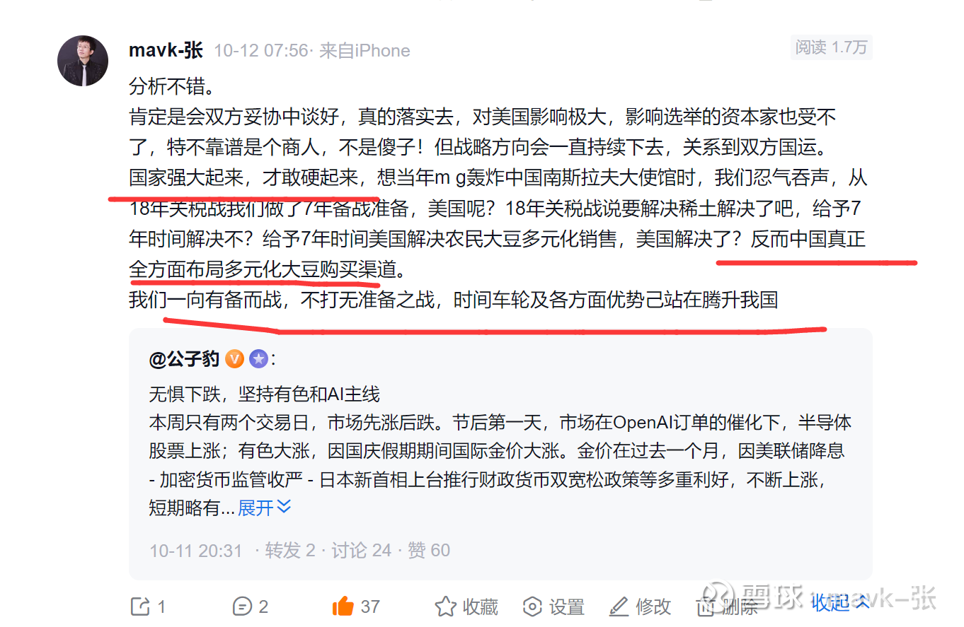昨天市场上演了一场惊心动魄的深V反转,表现远超出个人预期的,但也是在个人预期之中,在上周周未机构普遍预期大跌时,我连续发了几篇相关文章,坚定看好我大中华,让大家不要怂了,我们真正站起来,实力硬起来,中国从不打无准备之战,中国做事情都是有规化性、目标性及执行能力极强的,薄弱环节,国家肯定会详细列出解决问题清单的,每一个问题谁来解决,需要多长时间,怎么解决都规化得明明白白,像这次大豆,铁矿石 敢这样硬气骨气,都是长时间做了大量提前准备工作的。昨天跟一群投友也以实际行动支撑我大中华, 兴业银锡 大跌时,大幅再次加仓,仓位已基本跟藏格平行了,敢于加仓主要相信我国定力、实力及白银价格还在大涨,且预期还有很大涨幅,昨天兴业大跌明显是资金洗盘,把不坚定的洗出去,毕竟盛和资源涨得很好。