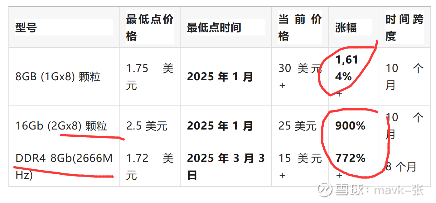 LPDDR4X(4GB): Q3 环比涨 30.4%(最低点在2025 年 Q2)