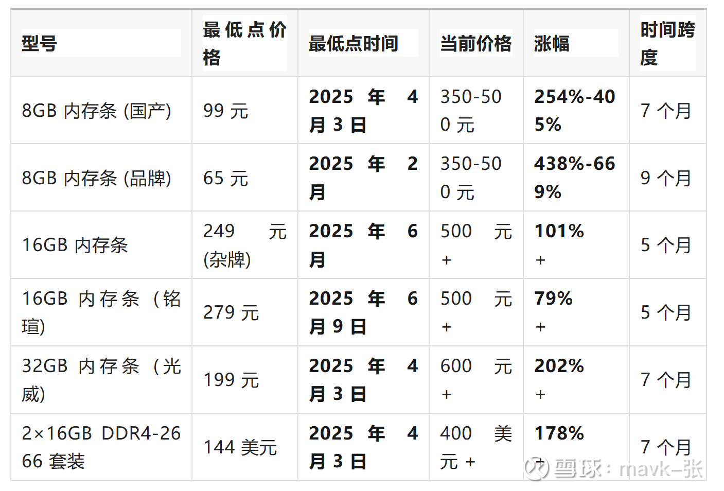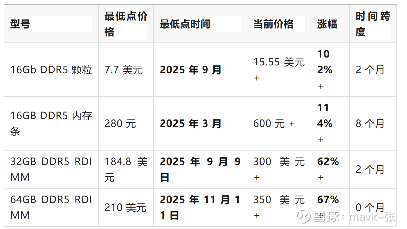 DDR5 内存: 颗粒涨幅 100%+(最低点: 2025 年 3 月 / 9 月)