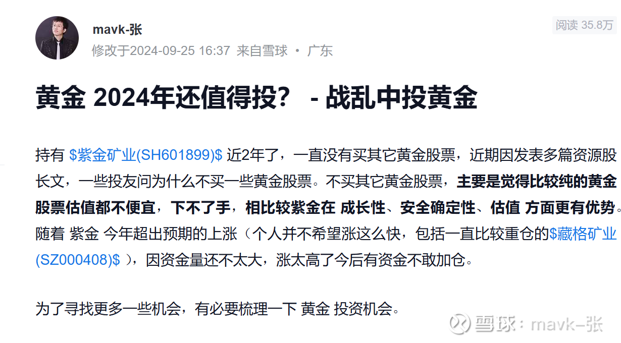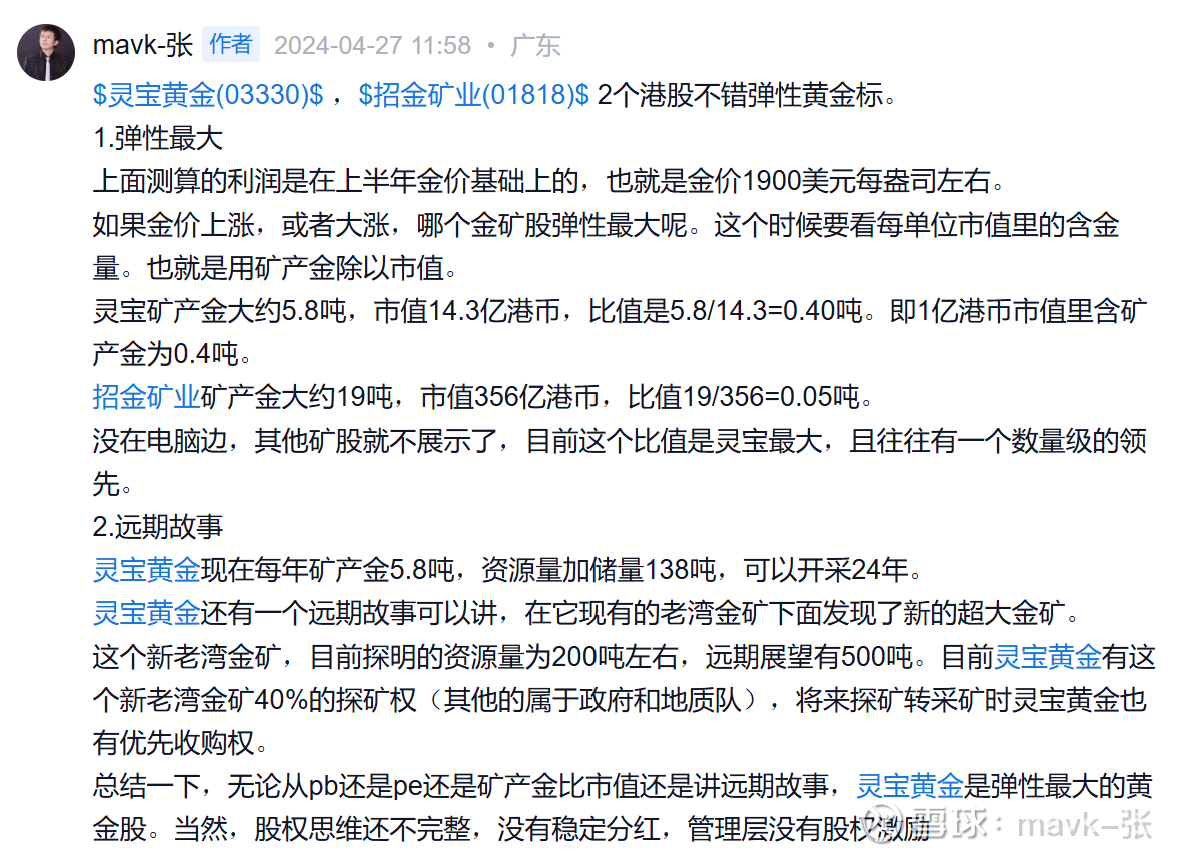 去年年底9月份到今年年初写过几篇 黄金投资策略材料 ,非常看好 灵宝黄金、招金矿业、中国黄金国际 几只低估、矿产量成长性好的股票。因 灵宝黄金 没有开港股账号,买不了,自己的执行能力比较差,一直拖着没有去香港办理,错过了灵宝黄金今年涨幅。只能被动在年初买了 中国黄金国际 这只股票。