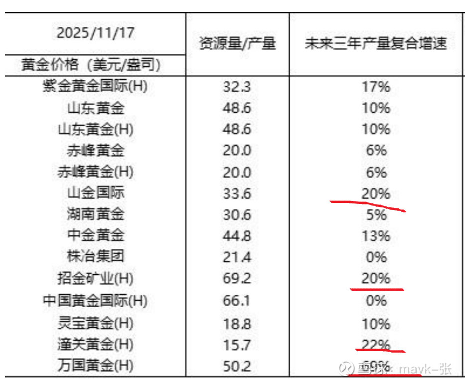 除了 这些黄金股,我关注还有1只黄金股,后3年产量复合增速 更好:
