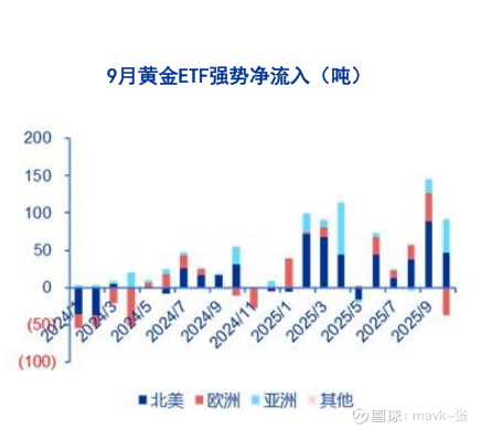 • 欧美黄金ETF与美债实际利率高度负相关,9月美联储如预期降息,黄金ETF净流入146.2吨,单月流量仅次于2022年3月。
