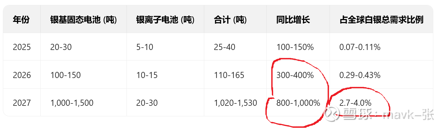 单 GWh 用量:约2.5 吨白银,远超传统锂电池 (约 0.1 吨 / GWh)