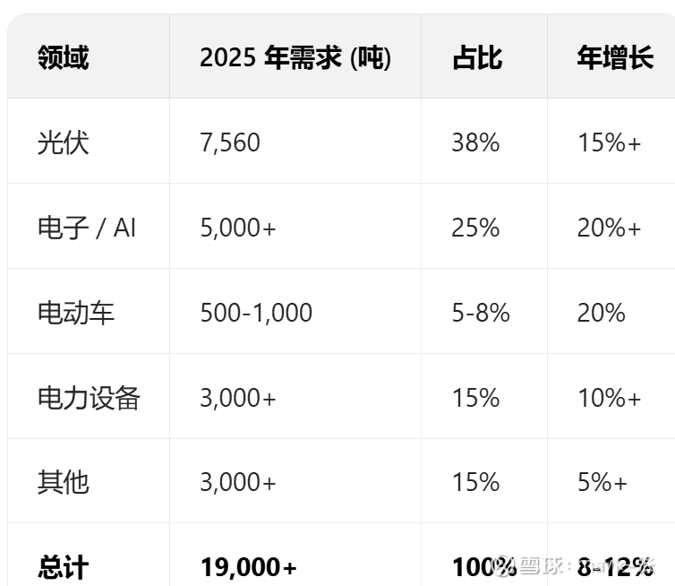 2025 年新能源车白银需求增长20%,占总需求12%,达500-1000 吨。