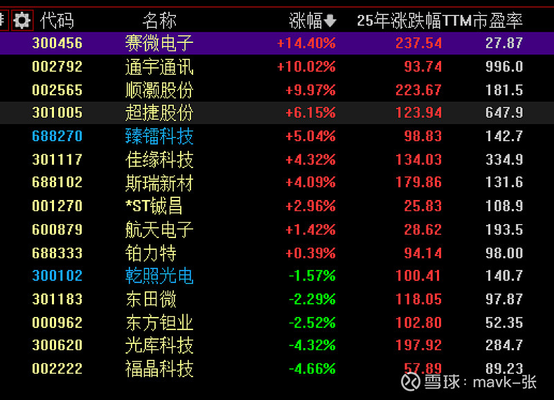 3. 赛微电子(MEMS业务横跨谷歌光模块与商业航天,被群友戏称为“真·谷歌”+“航天新贵”) 。