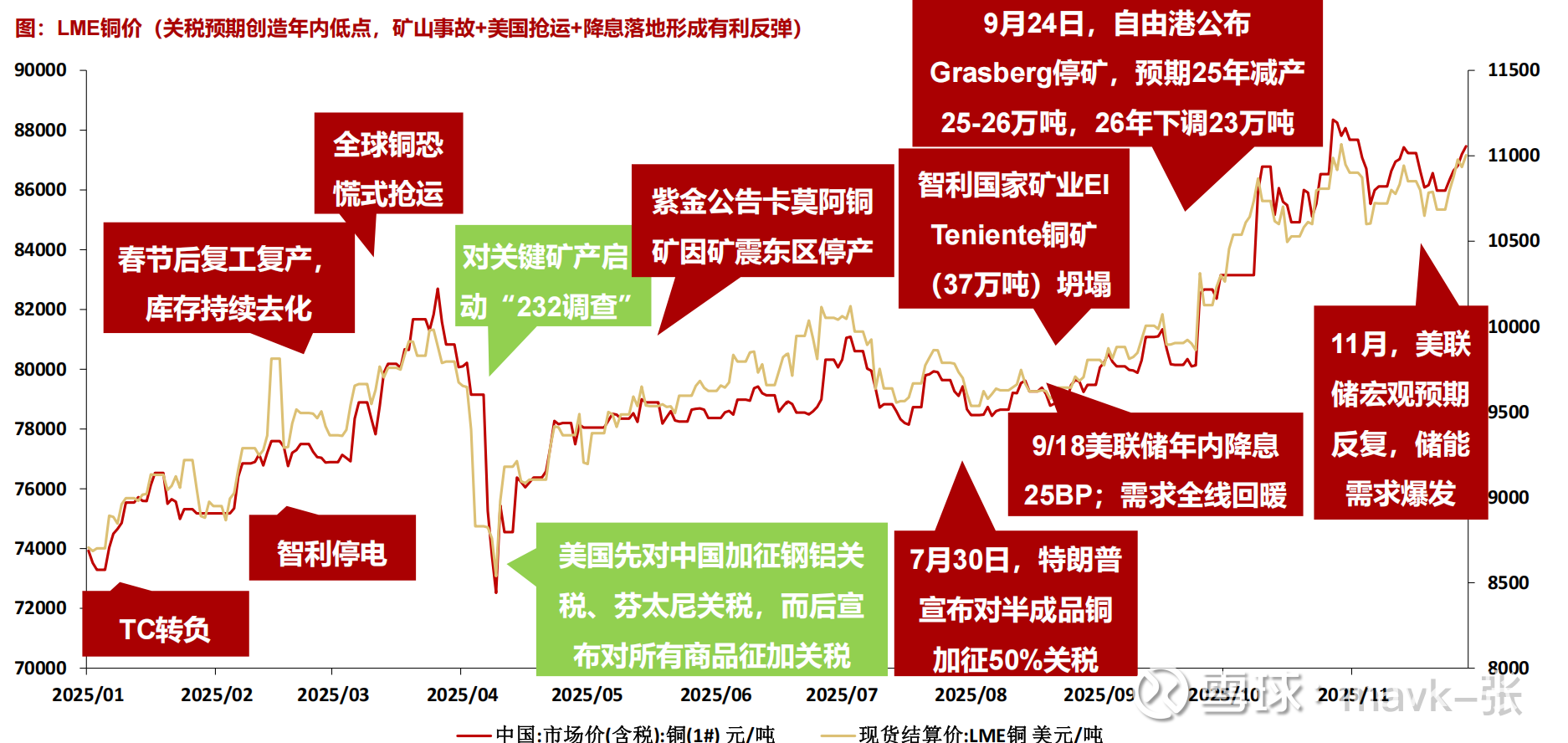 1)、铜:矿山事故频发,降息/关税为关键节点