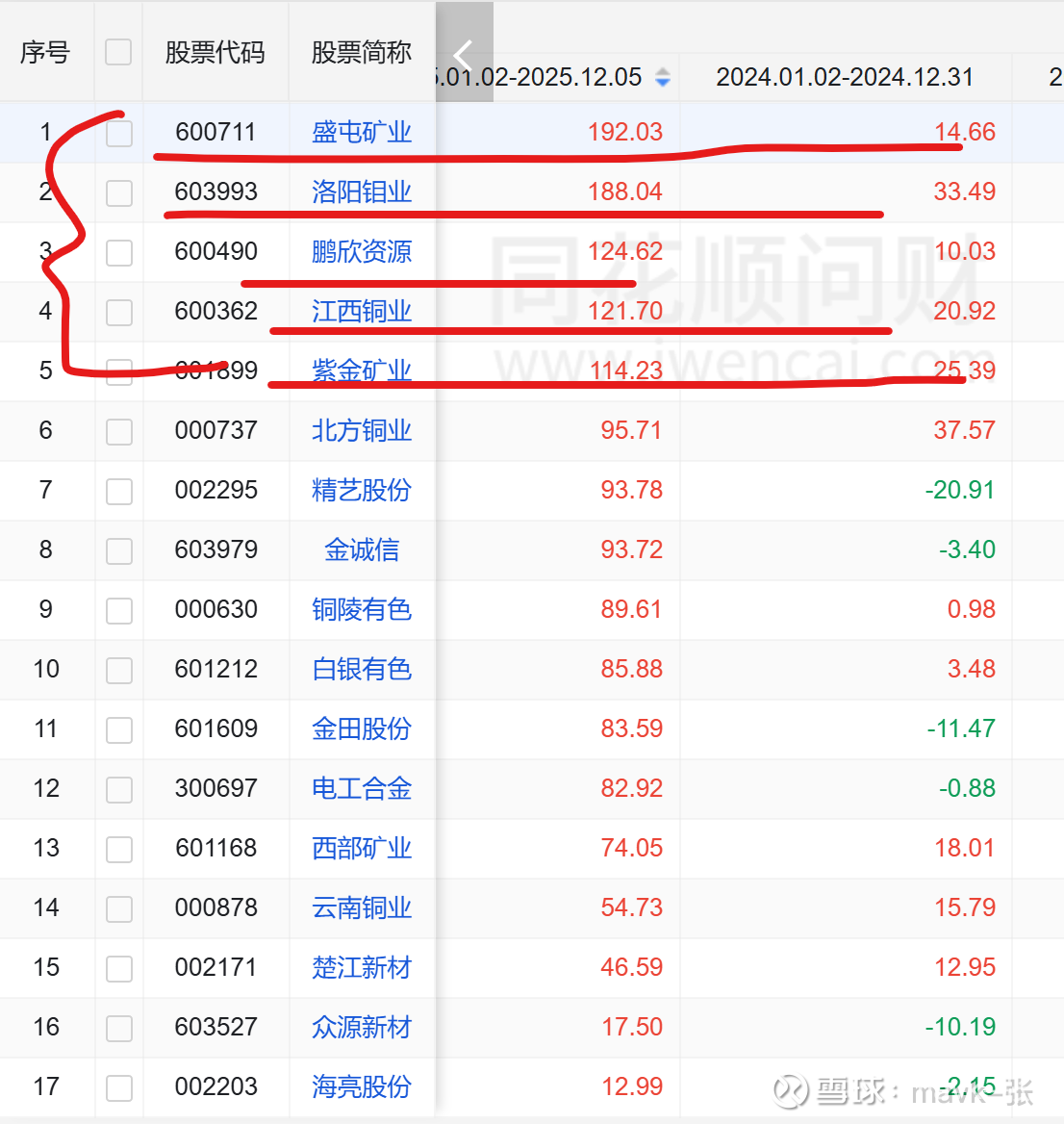 注:没有加入 藏格矿业,藏格矿业 到目前为止涨154%,排第三
