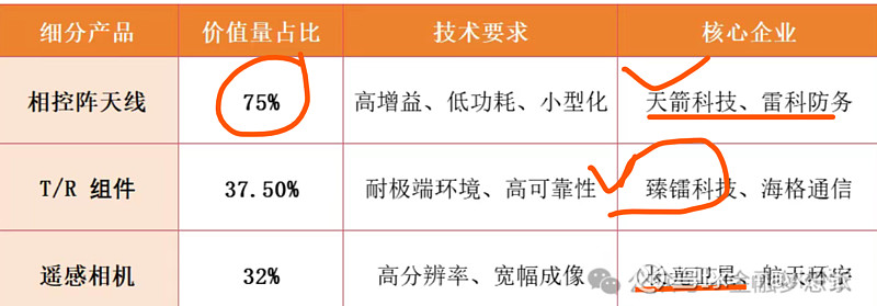 核心企业:臻镭科技(ADC 芯片)、成都华微(超高速 ADC)、陕西华达(射频器件)、超捷股份(精密阀门)。