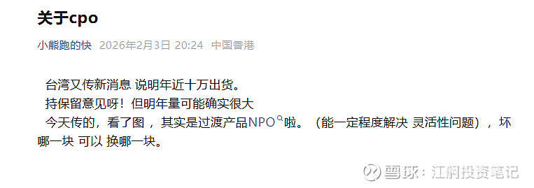 LITE 说自己 CPO(实际LITE和英伟达说的用在Rubin Ultra上个的CPO都是NPO(因为可拆卸),真正的cowos的CPO还处于实验室阶段)拿到几亿美金订单 股价大涨。 中际旭创说自己的NPO 27年放量,旭创 大跌 ,同一个利好事情,同一个东西交叉验证 老师们以为是利空 这不纯纯就是黄金坑吗?我先加为敬