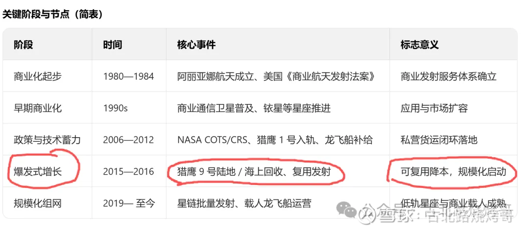 为啥今天突然要整理上面的这个,就是因为最近市场在热炒的商业航天板块,突然发现商业航天就是到了那个1的临界点了,所以非常有兴趣的要mark一下。