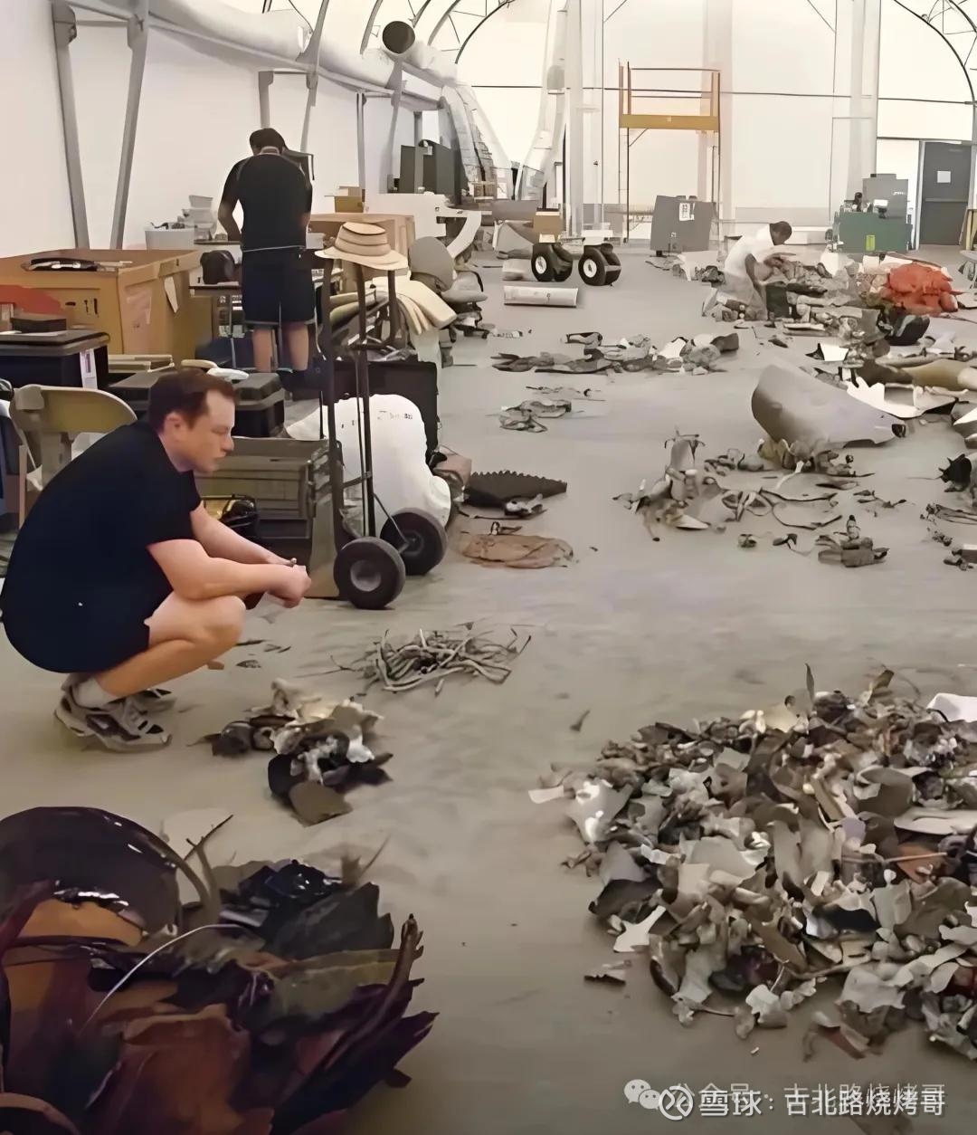 马斯克多年前搞spacex,一次次发射失败,差点破产,下图是2008年马斯克发射失利之后,看着收回来的碎片,也是心酸苦楚的: