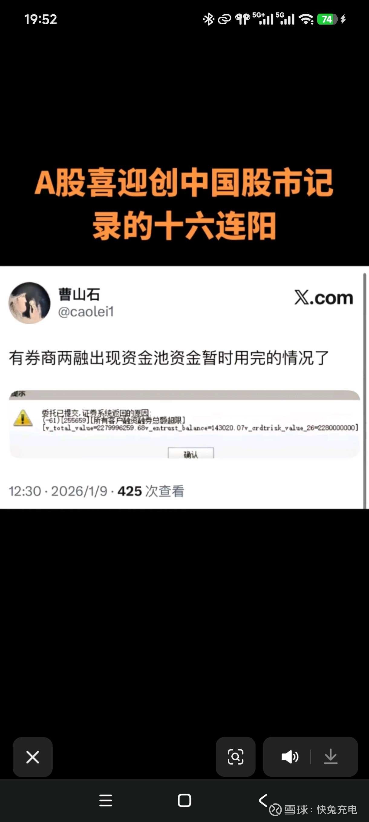 今天出现融资证券商的资金池被用光的情况