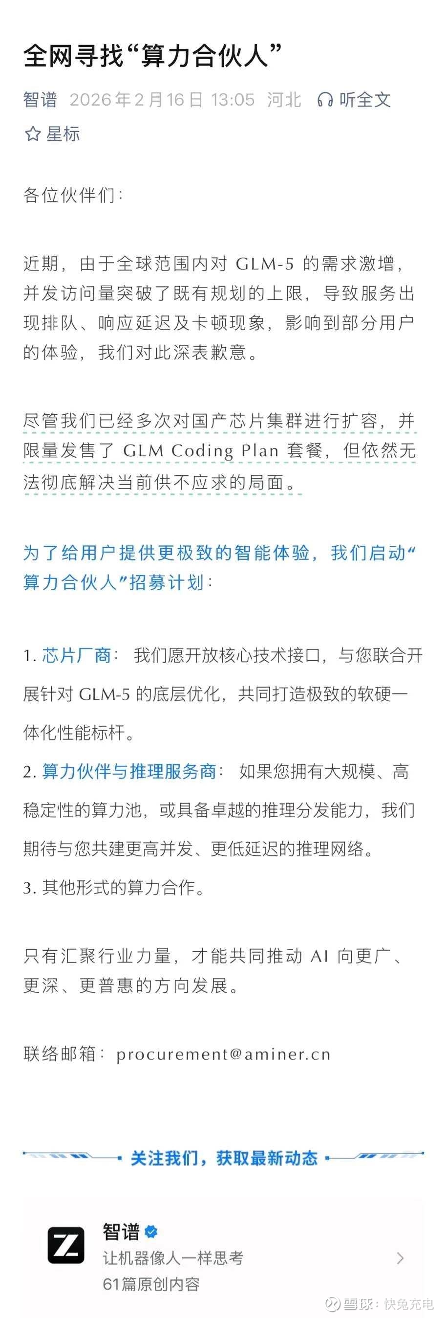 现在全网缺算力,智谱直接发公告了,从算力,卡算力,服务商一网打尽,