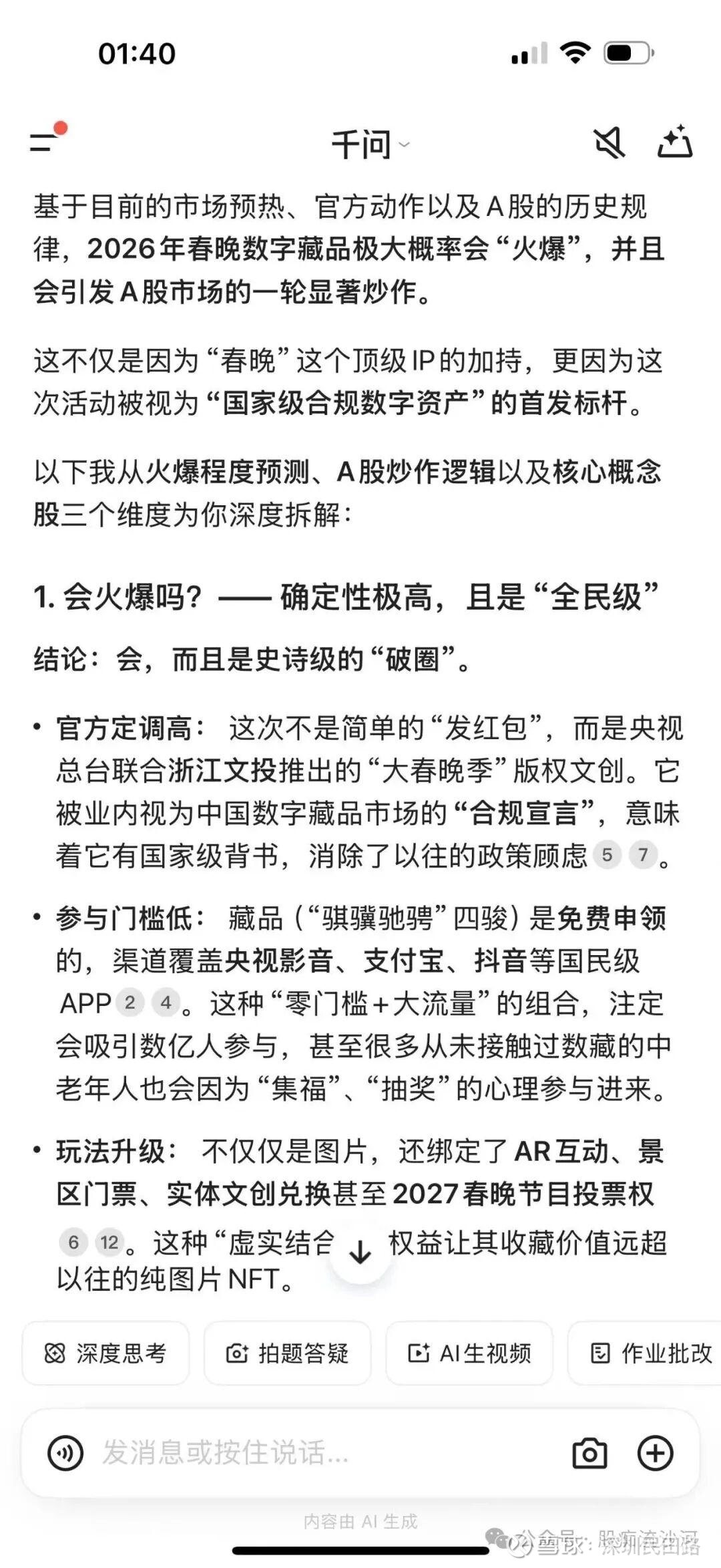 $浙文互联(SH600986)$ 我说一下我自己持有这个票的逻辑,这个票这几天走的特别强,很多人觉得是炒的geo和ai营销,其实这只是一个逻辑,更多是2026年春节的数字藏品逻辑,春节这次首次发放官方确权的数字藏品是肯定会爆的。