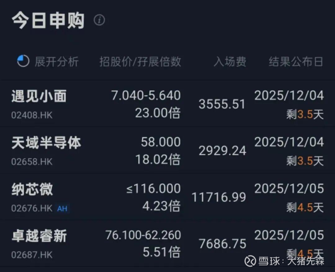 天域半导体(02658.HK):发行价58.00港元/股,每手50股,入场费约2,929.24港元;招股11/27–12/2,预期12/5上市;基石认购约9.26%;发行机制为B机制。