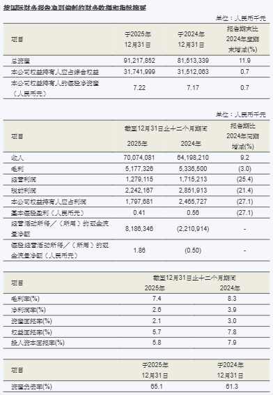 2025年,实现营业收入人民币700.74亿元、净利润人民币18.07亿元。董事会始终坚持「以投资者为本」的核心理念,坚持以高股息政策与全体股东共享高质量发展成果。建议派发末期股息每股人民币0.104元,全年基础派息率65%;为进一步彰显对长远发展的坚定信心、保障股东回报,本公司首次启动特别股息分配,建议增派特别股息每股人民币0.094元,合并末期股息后合计派发每股人民币0.198元。计入已派发的中期股息,全年合计每股人民币0.358元,实际派息率88%,派息规模与上年保持平稳。。
