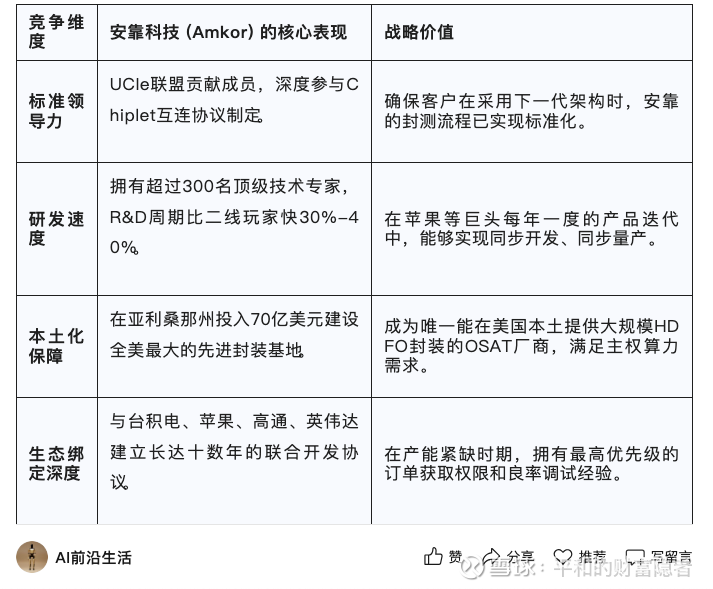 算力资产的重塑:在AI时代,封装产能将像光刻机一样成为稀缺资源。安靠在亚利桑那的布局,本质上是抢占了全球最先进算力的“物理落脚点”。