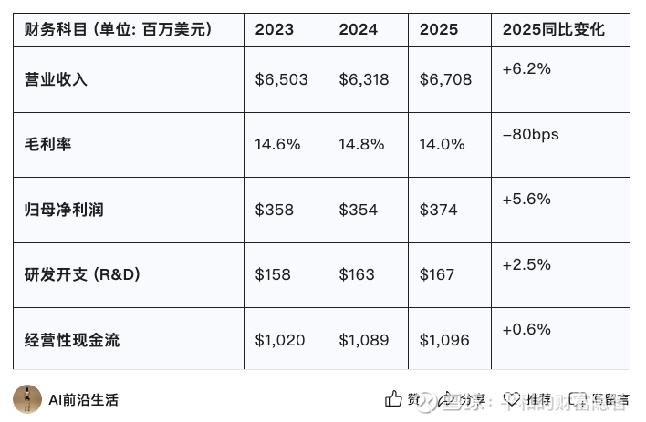 营收增长的质量:2025年营收增长6.2%,虽然数字看似温和,但内部结构发生了剧变。计算分部(Computing)在Q4同比飙升,反映了AI服务器订单的强劲。这部分高毛利订单对冲了传统智能手机(Communications)在2025年上半年疲软的影响。