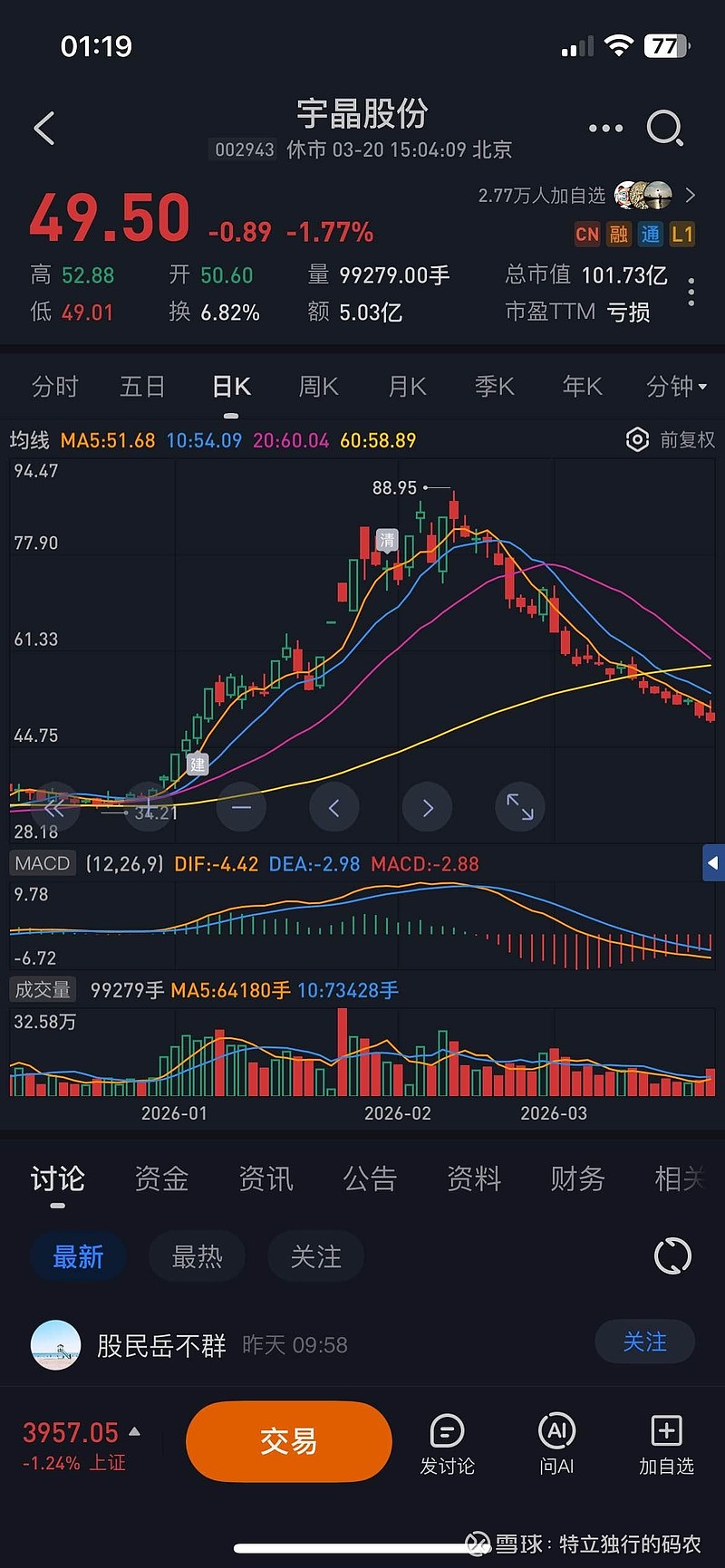 $宇晶股份(SZ002943)$