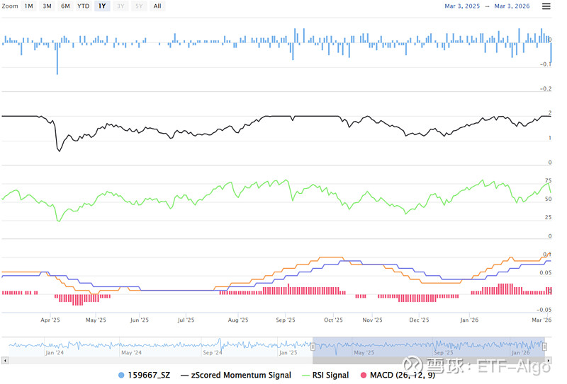 标准化动量信号(zScored Momentum Signal)是衡量价格长期趋势强度的标准化指标,当前动量为2,上涨趋势强。