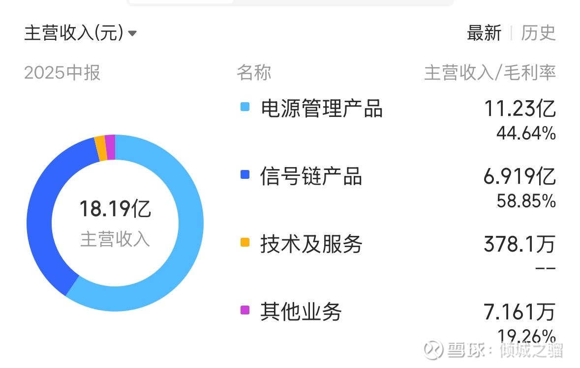 让我们在脑中重新复习一下之前发现的产品结构变化,从21年后,产品结构确实发生了变化,之前的观察记录在2025年12月15日那天的《圣邦股份营收中的产品结构变化》,那个文章,我只分了电源管理和信号链,忘记了电源管理也有高端产品。