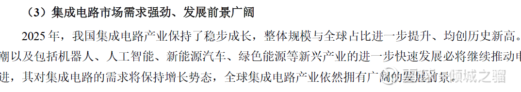 我在年报中截取了原文,在集成电路市场,圣邦股份使用了市场需求强劲、发展前景广阔的描述。