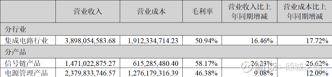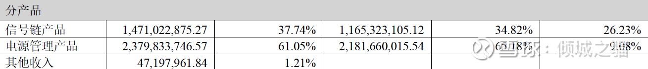 在财报中披露了信号链产品和电源管理产品,其中信号链产品营收达到14.71亿,相比于2024年的11.65亿,增速为26.26%;电源管理产品营收由2024年的21.81亿来到了2025年的23.79亿,增速为9.08%。