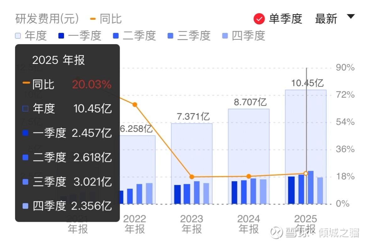 2025年研发费用整体为10.45亿,还是在增长,只是突然2025年Q4来了一个环比下降,甚至是2025年全年最低,这个数据有点异常。