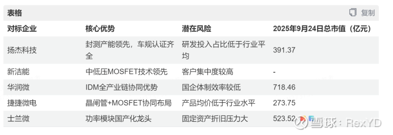 第二梯队(产业链与应用领域对标):扬杰科技(300373.SZ)、华润微(688396.SH) 第三梯队(综合实力对标):士兰微(600460.SH) [5] [6]