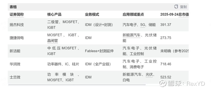 ● 汽车电子:士兰微(新能源汽车功率模块)、新洁能(OBC/DC转换模块)与华羿的车规级MOSFET布局重叠;