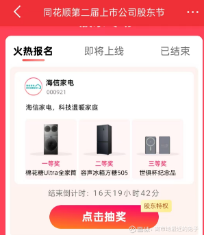目前倍轻松、天域生物之外,参与同花顺第二届上市股东节的上市公司还有海信家电、安孚科技、均胜电子、诚意药业,华致酒行、荣信文化、邦彦技术,想要参与的DD可以报名。