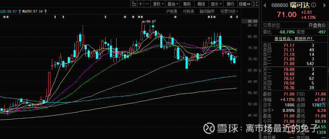瑞可达主要从事新能源连接器产品生产,总股本仅有2.057亿,股性相对活跃,配售日会有较大的波动,而且技术面上处于高位,有回调的动力,萌兔以申购为主,不再进行配售。